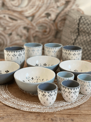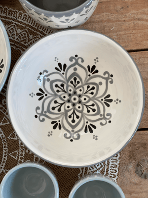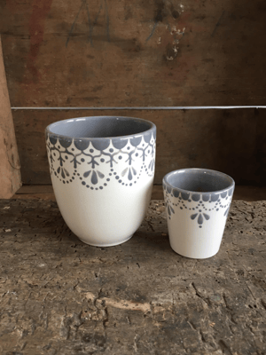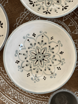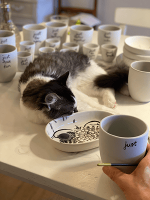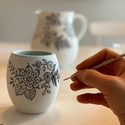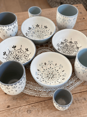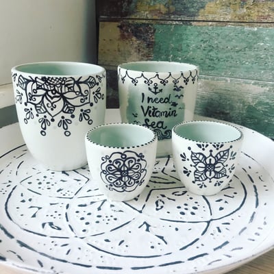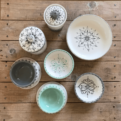 Gebrauchsgegenstände waren immer schon bei den Siedalingen aus Beton ein grosses - dort leider nicht einfach umsetzbares - Thema für mich... jetzt male ich im Siedastil Muster auf Keramik,