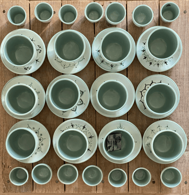 Es ist auch bisschen wie Zauberei, da man ganz matte Gefässe in den Ofen stapelt, bei welchen „frau“ während dem Malen der eigens angefertigten Farbpalette vertrauen, sich aber nicht an das