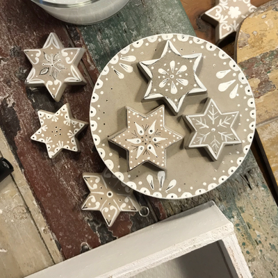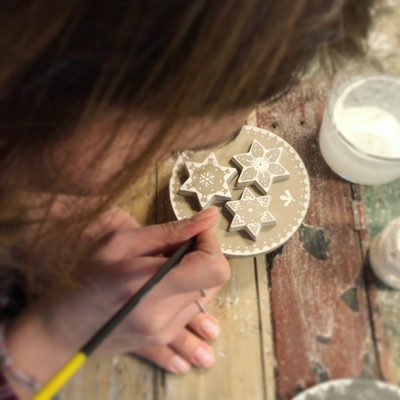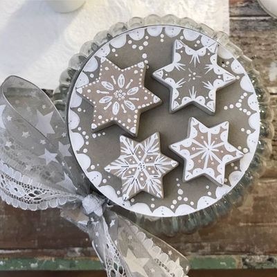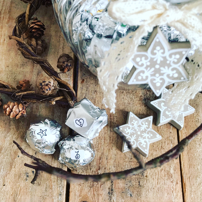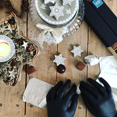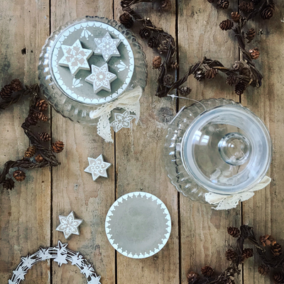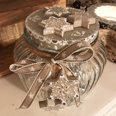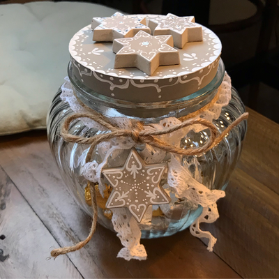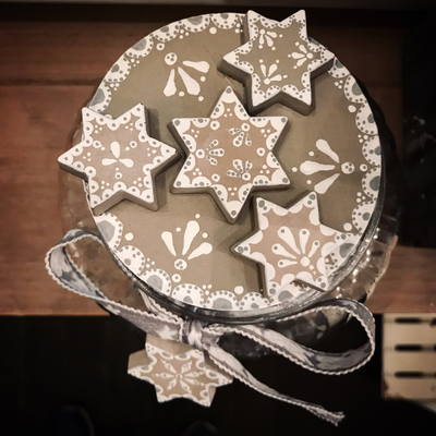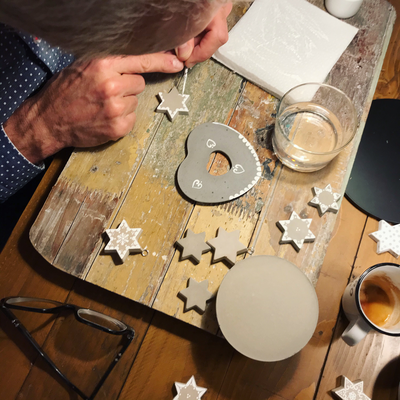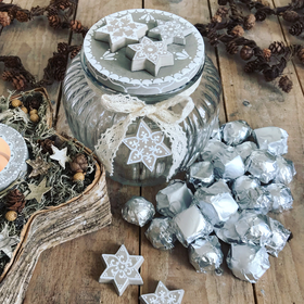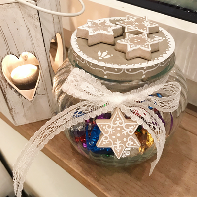 Während zwei gemütlichen Stunden gestaltest du unter meiner Anleitung ein Sieda-Adventskalenderglas. Du bemalst mit Pinsel und weisser Farbe einen Betondeckel und sechs Betonsterne (beides von mir vorgegossen), welche du anschliessend auf dem Deckel anordnen und befestigen kannst. Einer der Sterne wird an einer dekorativen Schleife um das Glas gebunden. Während die Farbe trocknet, wickelst du sorgfältig 24 von meiner Ateliernachbarin und Confisseurin Josiane (www.creationsucree.ch) ganz frisch, köstlich handgemachte Pralinen in Pralinenpapierchen und beschriftest sie hübsch mit den Ziffern 1-24. Die 24 kommt zuunterst, die 1 eher oben. Fertig ist der etwas andere Adventskalender! Jetzt stellt sich nur noch die Frage, ob du das weihnächtliche Glas lieber verschenken oder für dich selber behalten wirst? Später kannst du es für Guetsli, gute Wünsche, Kaffeekapseln, Mehl, Flöckli, Haargummis, Kaugummis etc. gebrauchen. Auf alle Fälle besteht es (inklusive Bauchinhalt) aus 100% schweizerischer, liebevoller Handarbeit. Adventsherz, was willst du mehr😊?