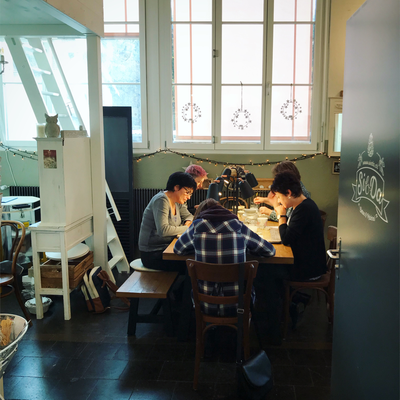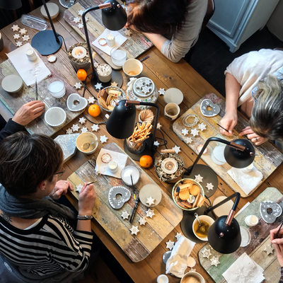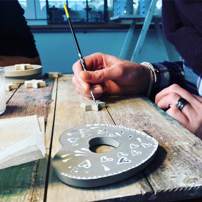 Nach dem ich im Oktober 2019 mein ehemaliges Lädeli im Oederlin in ein gemütliches Atelier, das SiedAAtelier umgestaltet hatte, startete ich im November voller Aufregung mit dem ersten Workshop. Fünf mal fünf tolle TeilnehmerInnen wurden in die Malerei auf Beton eingeführt und gestalteten ihr eigenes Adventskalenderglas, welches schlussendlich mit 24 handgemachten Pralinen von Atelier Sucré gefüllt wurde.