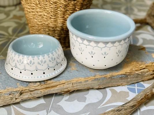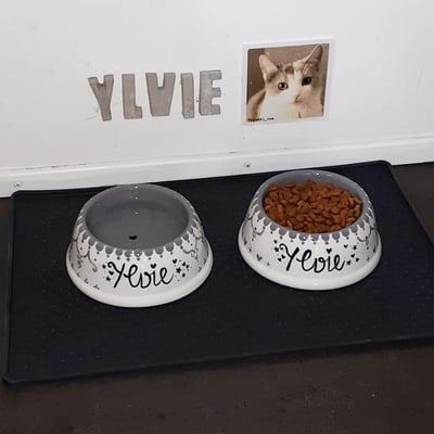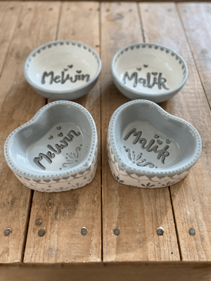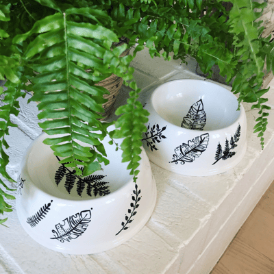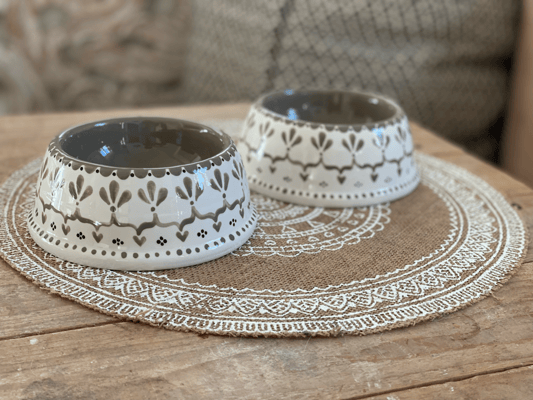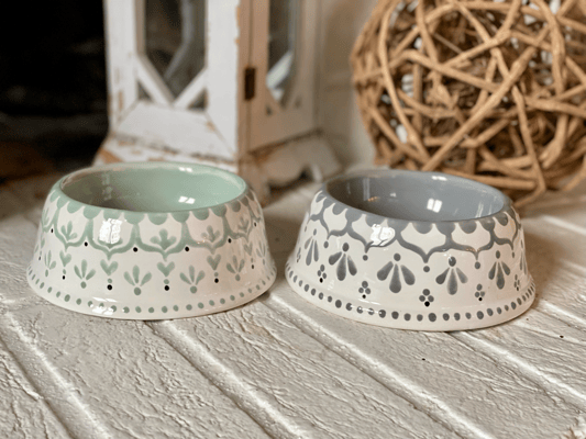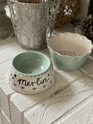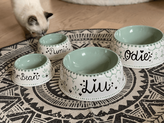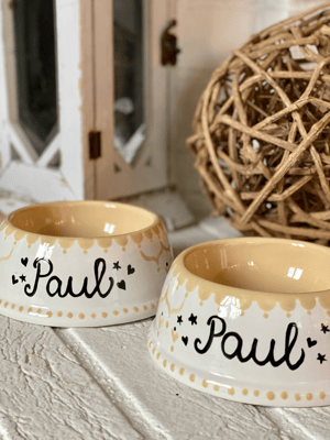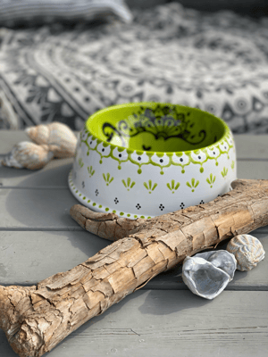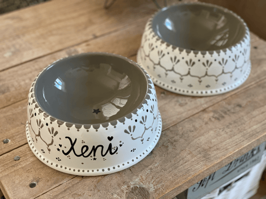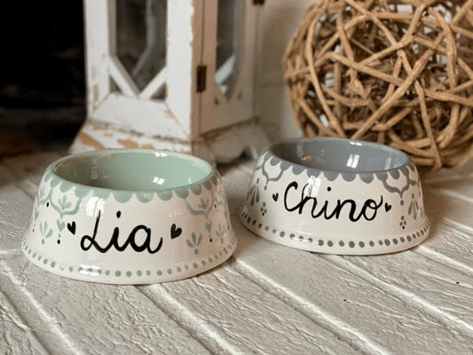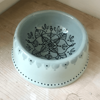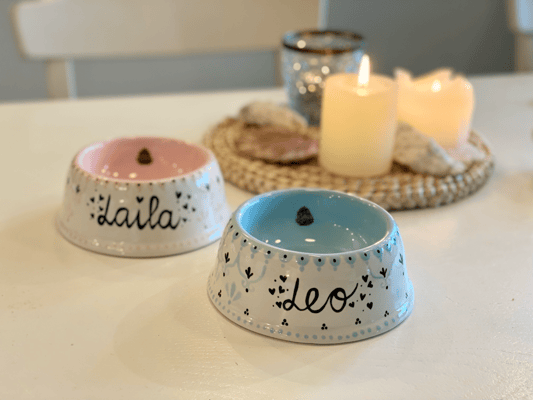 Alle meine Hunde- und Katzennäpfe sind von mir handbemalte Unikate aus Keramik. Sie sind nicht nur hübsch anzusehen, sondern praktischerweise auch spülmaschinenfest.